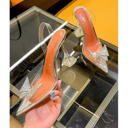 Lepai Women S Clear Heels Shoes Bow Knot Crystal Rhinestones Slingback Wedding Shoes Pointed Toe High Heel Sandals 38 Yards Walmart Canada